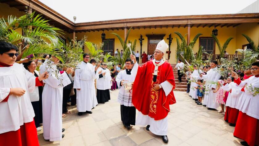 Monseñor Alfredo Vizcarra bendijo los ramos de palma y olivo en el patio arzobispal, y presidió la Santa Misa en la Basílica Catedral.