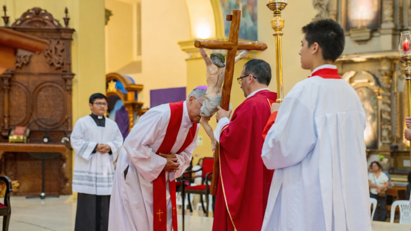 Con la mirada puesta en Jesús crucificado, los fieles de la Arquidiócesis Metropolitana de Trujillo, unidos en un clima de recogimiento, conmemoraron la Pasión del Señor este Viernes Santo.