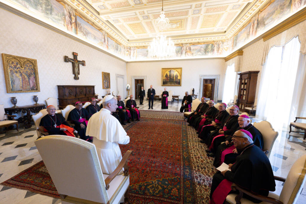 La Visita ad Limina Apostolorum es un encuentro que realizan los obispos con el Papa y con los dicasterios de la Santa Sede, como signo de comunión entre las Iglesias locales y la Iglesia de Roma. Durante esta visita, los obispos presentan la realidad pastoral de sus diócesis, comparten los principales desafíos y avances en la evangelización y reciben las orientaciones del Santo Padre, que ayudan a discernir y fortalecer la misión de la Iglesia en cada país.