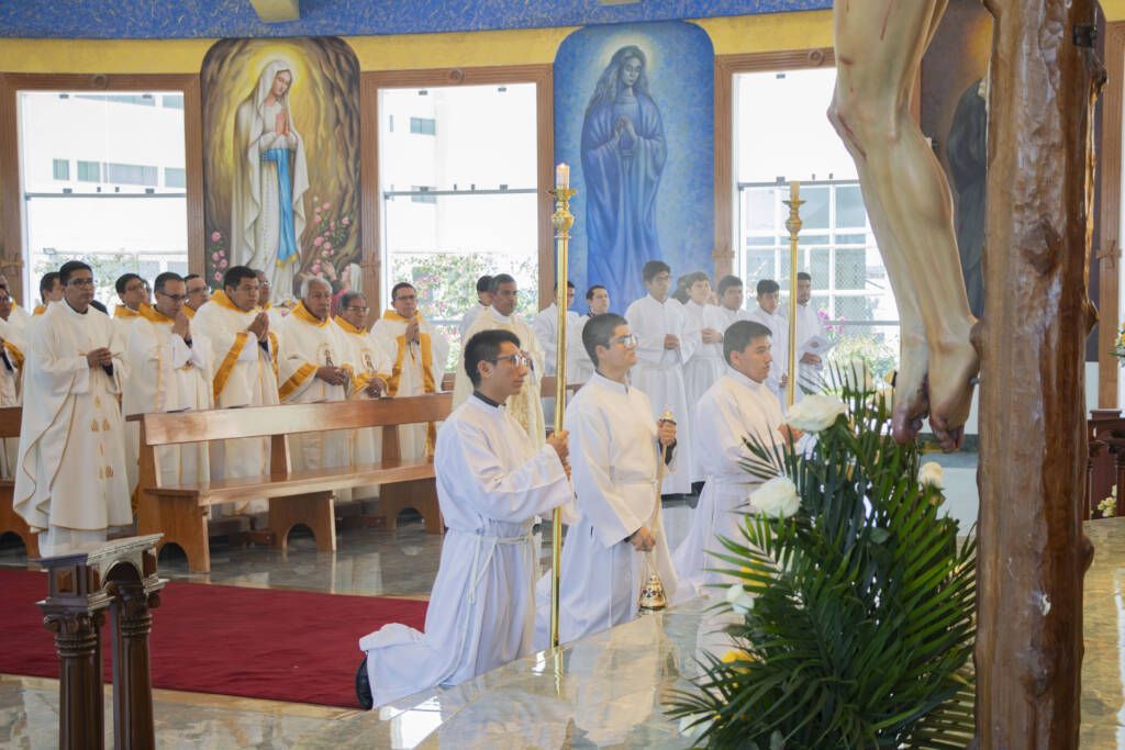 La Sagrada Eucaristía fue concelebrada por Mons. Francisco Castro, algunos sacerdotes de esta arquidiócesis, y obispos de otras jurisdicciones eclesiásticas del Perú. En ella también participaron religiosas, seminaristas, autoridades académicas de la Universidad Católica de Trujillo, feligresía en general.