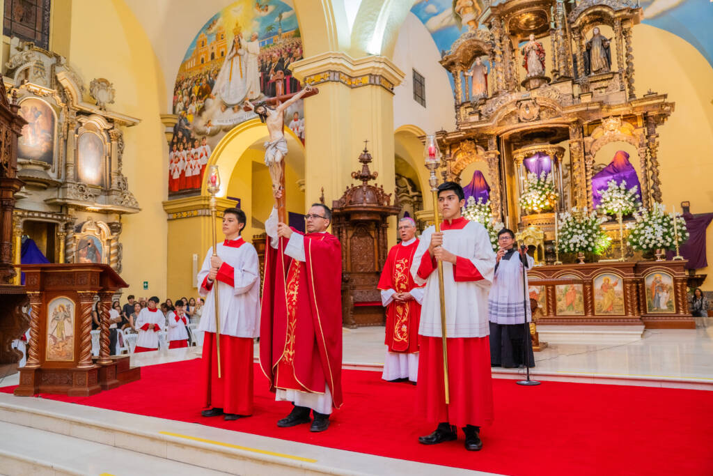 En su prédica, pronunciada en la Basílica Catedral, Mons. Alfredo Vizcarra Mori, S. J., Arzobispo Metropolitano de Trujillo, señaló que contemplar al Crucificado es creer que Dios no es indiferente, sino que asume lo que provoca muerte y lo carga en su propia carne.